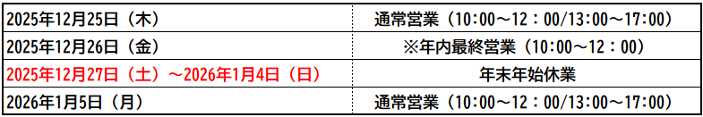 【年末年始休業日】